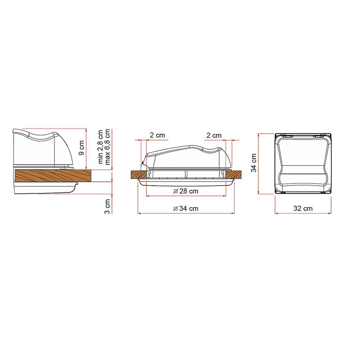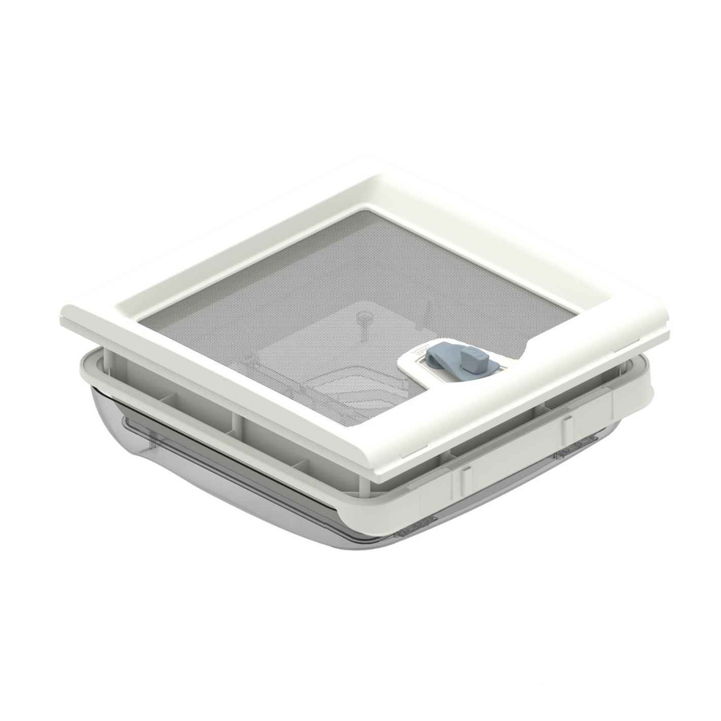 Claraboya Vent 28 Fiamma 28 x 28 cm para autocaravana, caravana y furgón equipado. La claraboya Vent 28 Fiamma es compacta y por ello perfecta para acondicionar pequeños espacios en los vehículos recreativos. Fabricada en material plástico anti-UV y muy resistente, la claraboya Vent 28 Fiamma también está equipada con una tapa aerodinámica y ventilación permanente (sin riesgo de filtración de agua en su autocaravana o furgoneta gracias a un sistema de juntas patentado). Con mosquitera integrada. La claraboya es fácil de instalar por uno mismo la fijación se realiza desde el interior por un simple sistema de pinzamiento del techo (dimensiones de 2,5 cm a 5 cm).