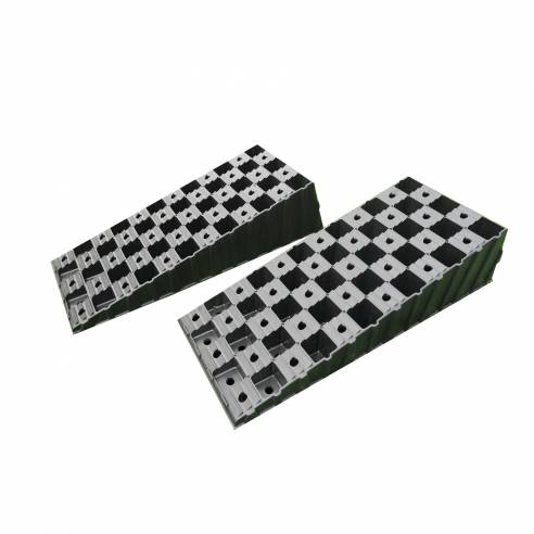 Los calzos de estabilización Wedge Level son perfectos para un uso ocasional. El vehículo es fácil de maniobrar sobre los calzos, cuya altura es progresiva y no por niveles.