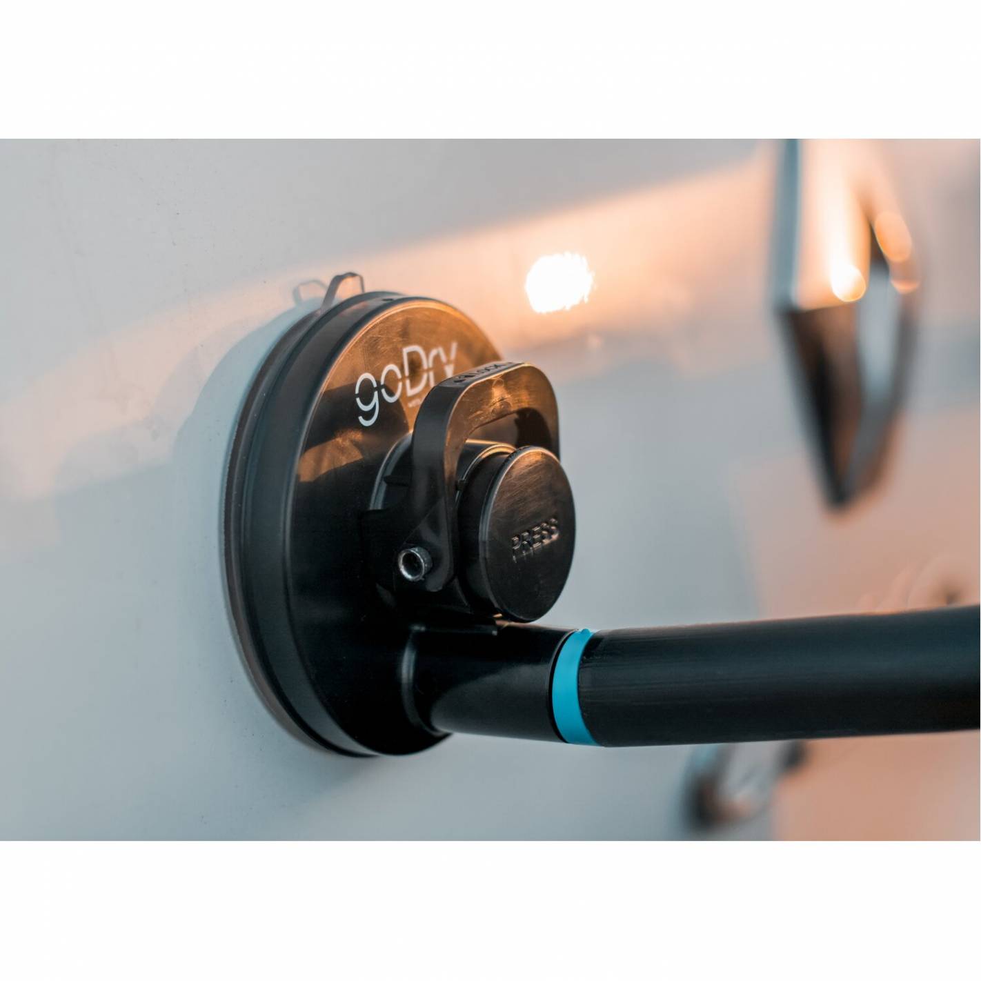 El secador está diseñado para coches o vehículos de ocio (autocaravanas, furgonetas, caravanas, barcos, etc.). Puede instalarse tanto en el interior (cabinas de ducha, azulejos del baño, etc.) como en el exterior (ventanas, carrocerías, miradores, etc.) sobre una superficie lisa. Gracias a sus potentes ventosas, eltendedero Godry se mantiene estable una vez fijado, incluso con cargas pesadas.