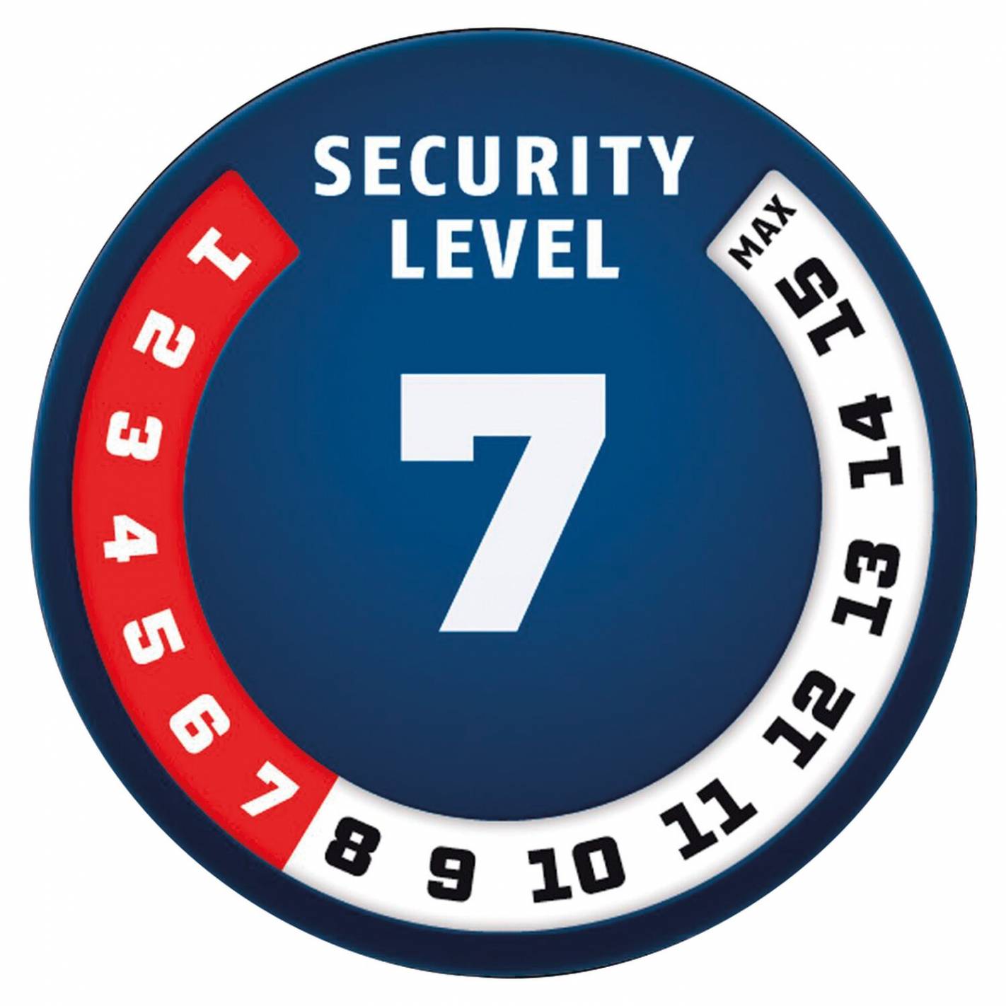 Nivel de seguridad: 7. Articulación de acero de 5 mm. Longitud: 80 cm. Incluye 2 llaves y una bolsa de transporte.