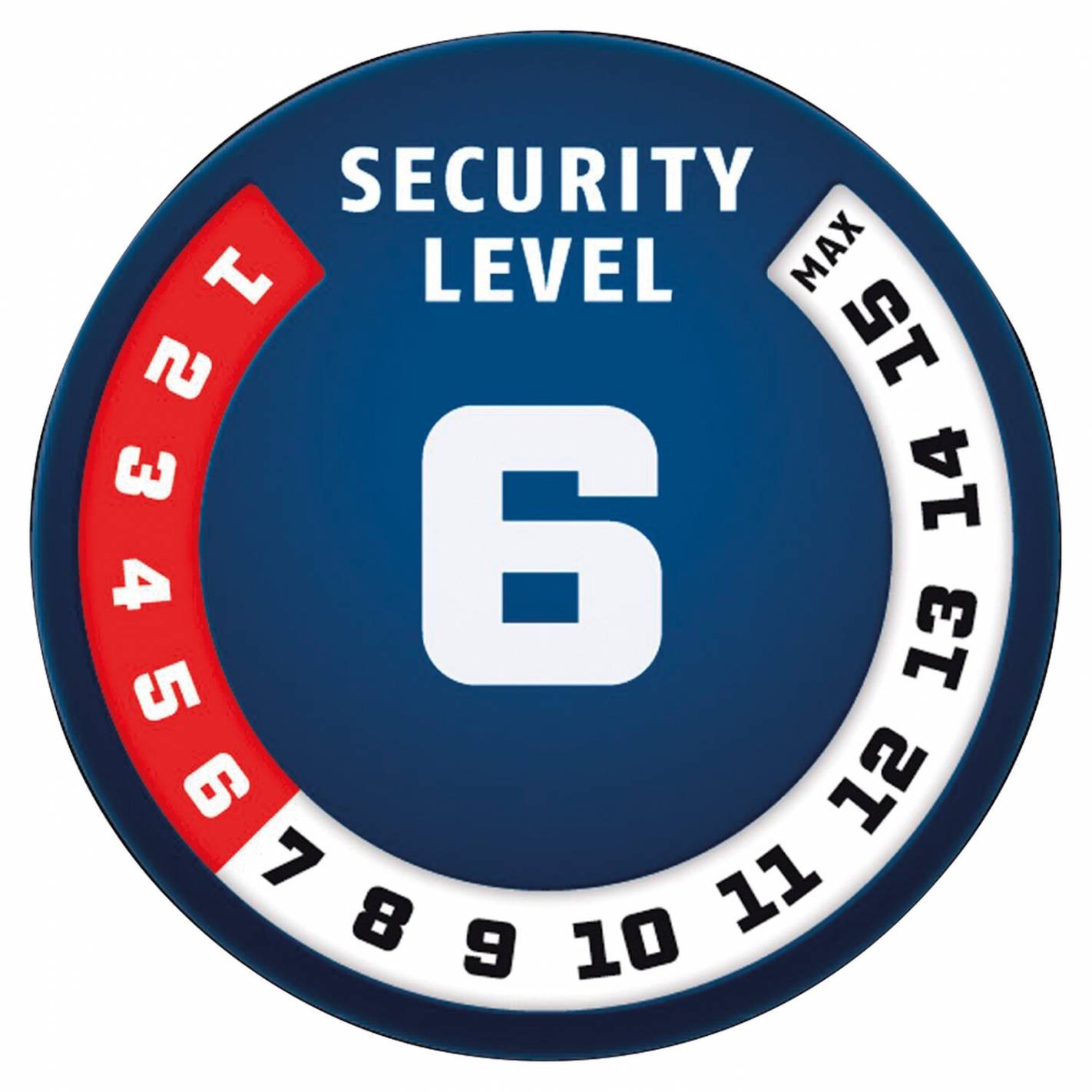 Nivel de seguridad 6. Cadena y eslabones de acero endurecido de 6 mm. Longitud 75 cm. Se suministra con 2 llaves.