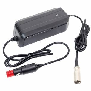 Cargador universal para toma de mechero para cargar la batería de las bicicletas eléctricas (e-bike) de 36 V. Este cargador es perfecto para los aventureros en bicicleta permite cargar fácilmente la batería de la bicicleta eléctrica enchufándola a la toma de mechero de 12 V del vehículo recreativo: autocaravana, caravana, embarcación o furgoneta camper. Intensidad: 2 A. El cargador incluye los conectores XLR/RCA y Jack.