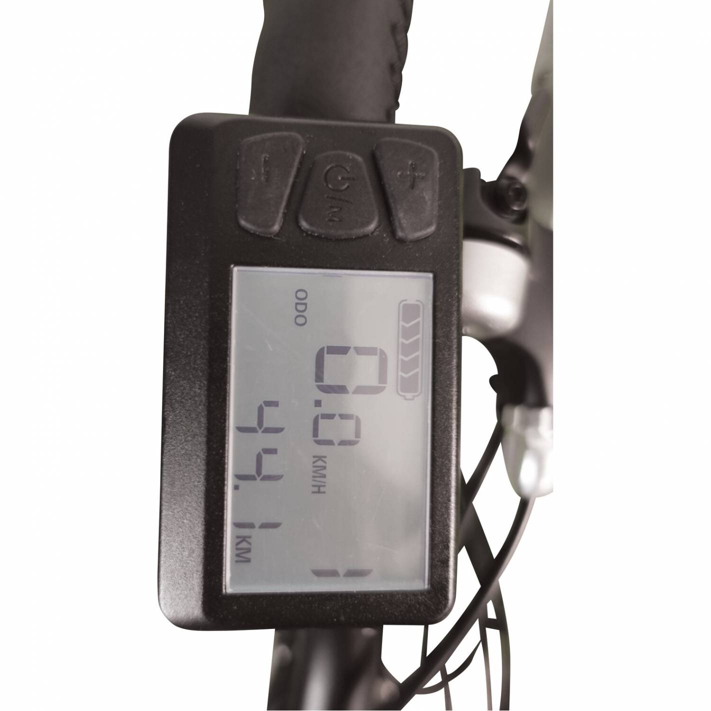 - Pantalla: pantalla LCD retroiluminada, control en el manillar, indicador del nivel de asistencia, kilometraje (parcial y total), velocidad (instantánea, máxima, media), indicador de batería, indicador de luces