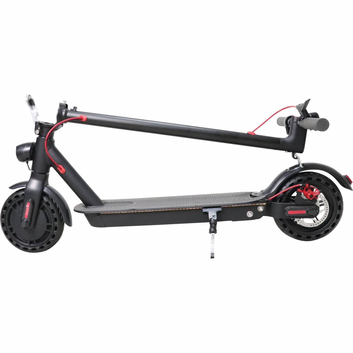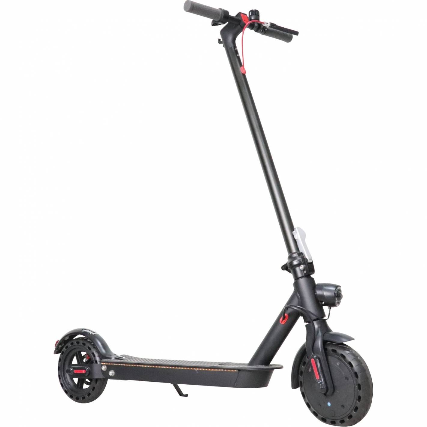 Un scooter ES05 350W negro para llevar a todas partes, incluso en su autocaravana. Eléctrico.