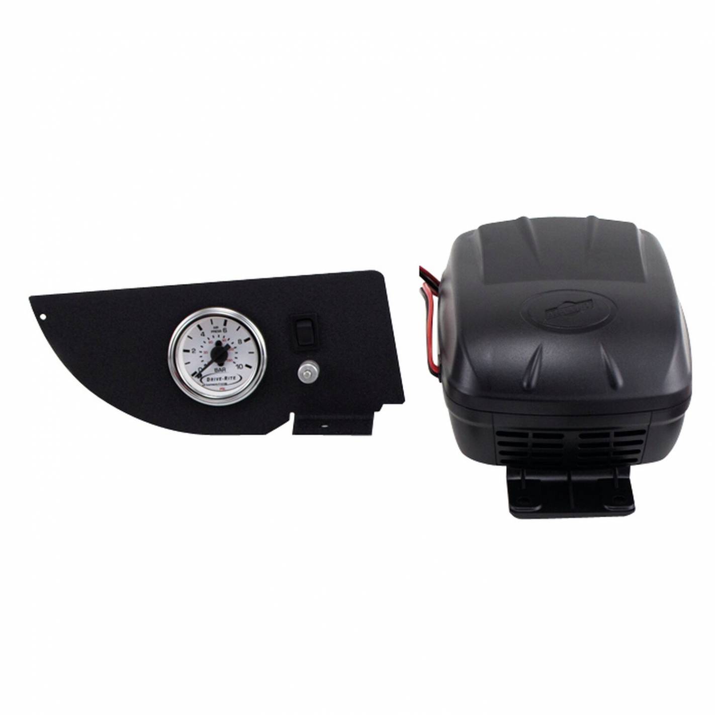 Kit compuesto de un compresor empotrado de 12 V + Caja de control equipada de un manómetro de presión + Suspensiones.