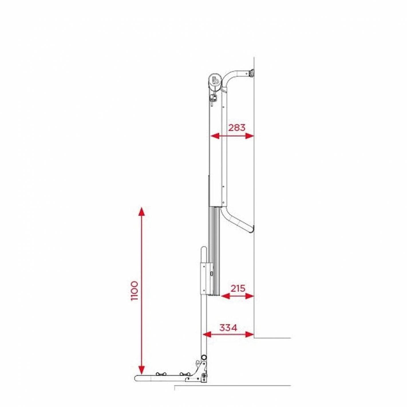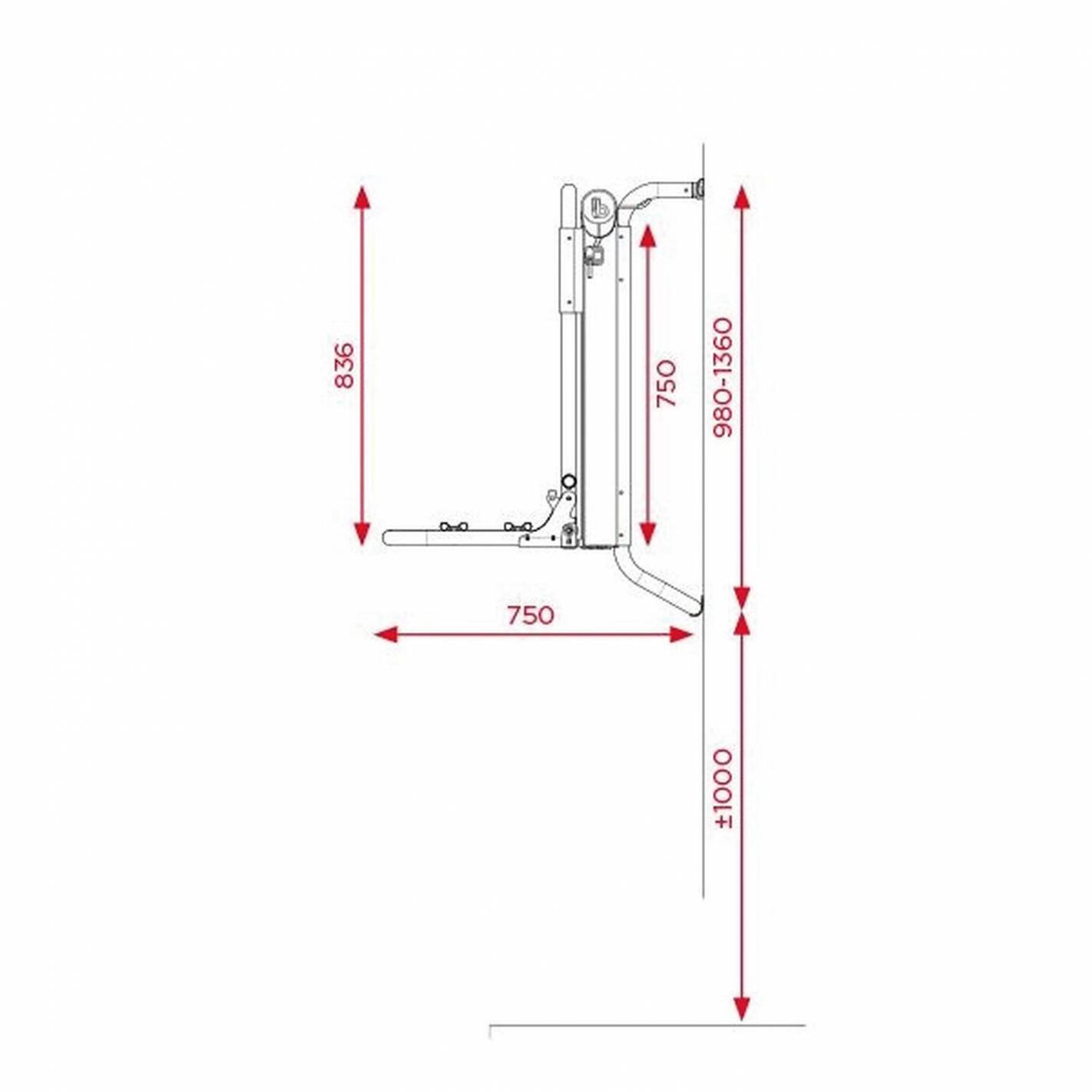 - La elevación es de 110 cm con descenso vertical hasta el suelo