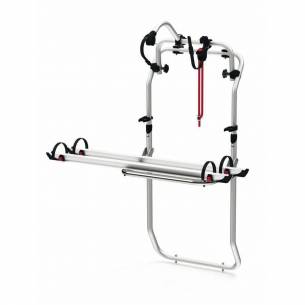 El portabicicletas Carry-Bike DJ 2023 de Fiamma está diseñado para transportar hasta dos bicicletas en furgonetas camperizadas como la Fiat Ducato, la Mercedes Sprinter, la Volkswagen Crafter y la Ford Transit.