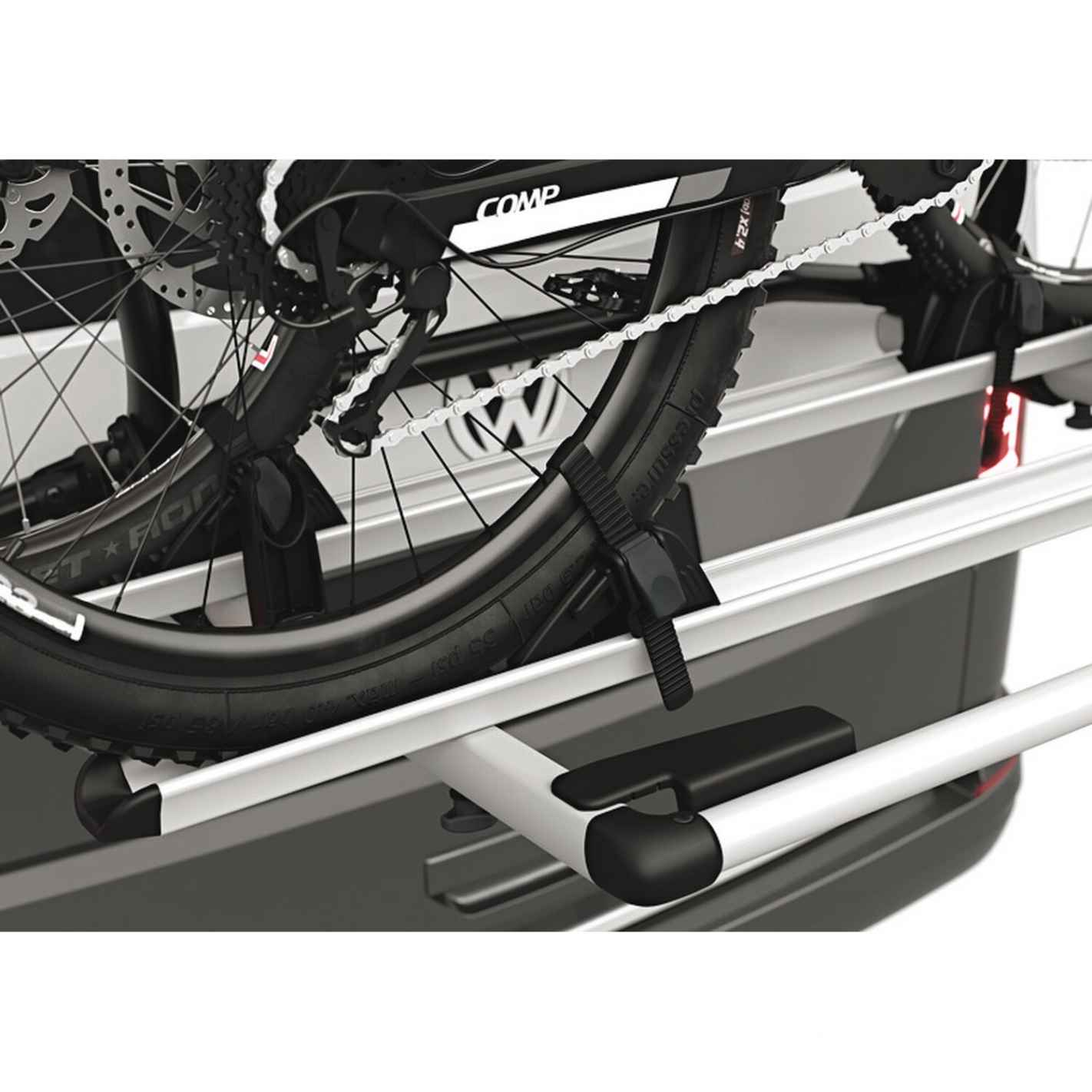 Capaz de transportar hasta 2 bicicletas (con adaptadores opcionales para la tercera y cuarta bicicleta, que se piden por separado), soporta un peso total de 60 kg, con una capacidad de 30 kg por bicicleta, lo que lo hace compatible con modelos eléctricos, de montaña o urbanos. Los brazos de fijación extraíbles incorporan un limitador de par AcuTight que avisa con un clic cuando el apriete es óptimo. Los raíles son regulables lateralmente para adaptarse a la distancia entre ejes de cada bicicleta, y las hebillas microclip garantizan una sujeción estable y precisa.