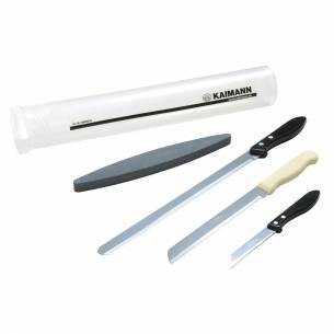 El kit también incluye una piedra de afilar para mantener la calidad de las cuchillas y una práctica caja de almacenamiento para un transporte seguro. Robusto y bien pensado, este set facilita enormemente los trabajos de aislamiento.