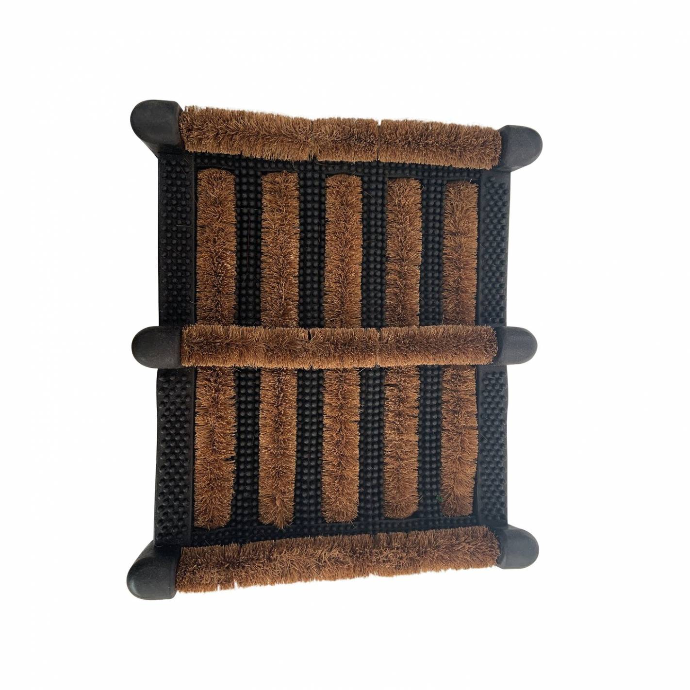 La mini alfombra brush está hecha de fibra de coco 100% natural. Es ideal para limpiar la parte inferior de sus zapatos.