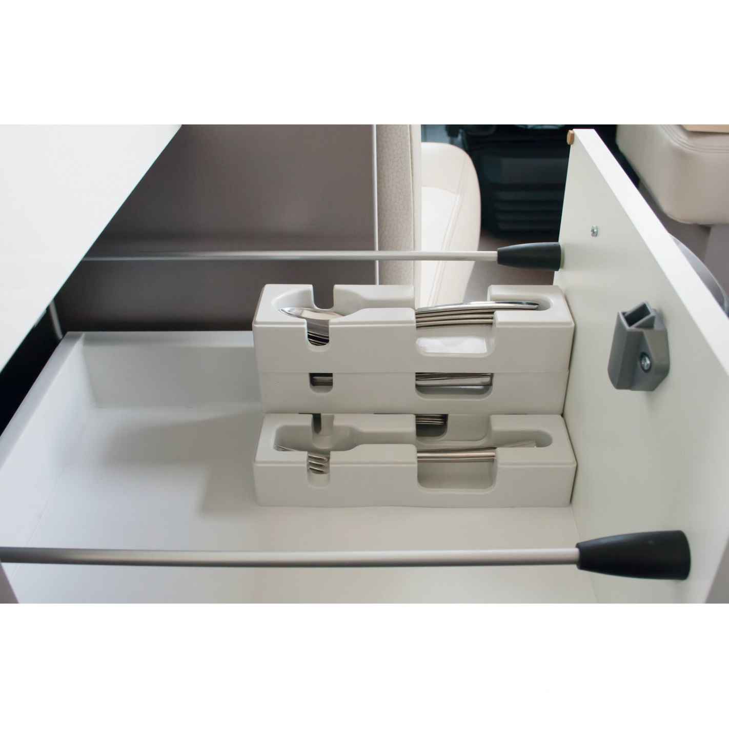 Los módulos organizadores de cubiertos son muy prácticos para guardar los cubiertos en un cajón de la cocina. Diseñados para espacios reducidos, son perfectos para viajar en vehículos recreativos (autocaravanas, caravanas, furgonetas camperizadas, furgonetas, barcos...).