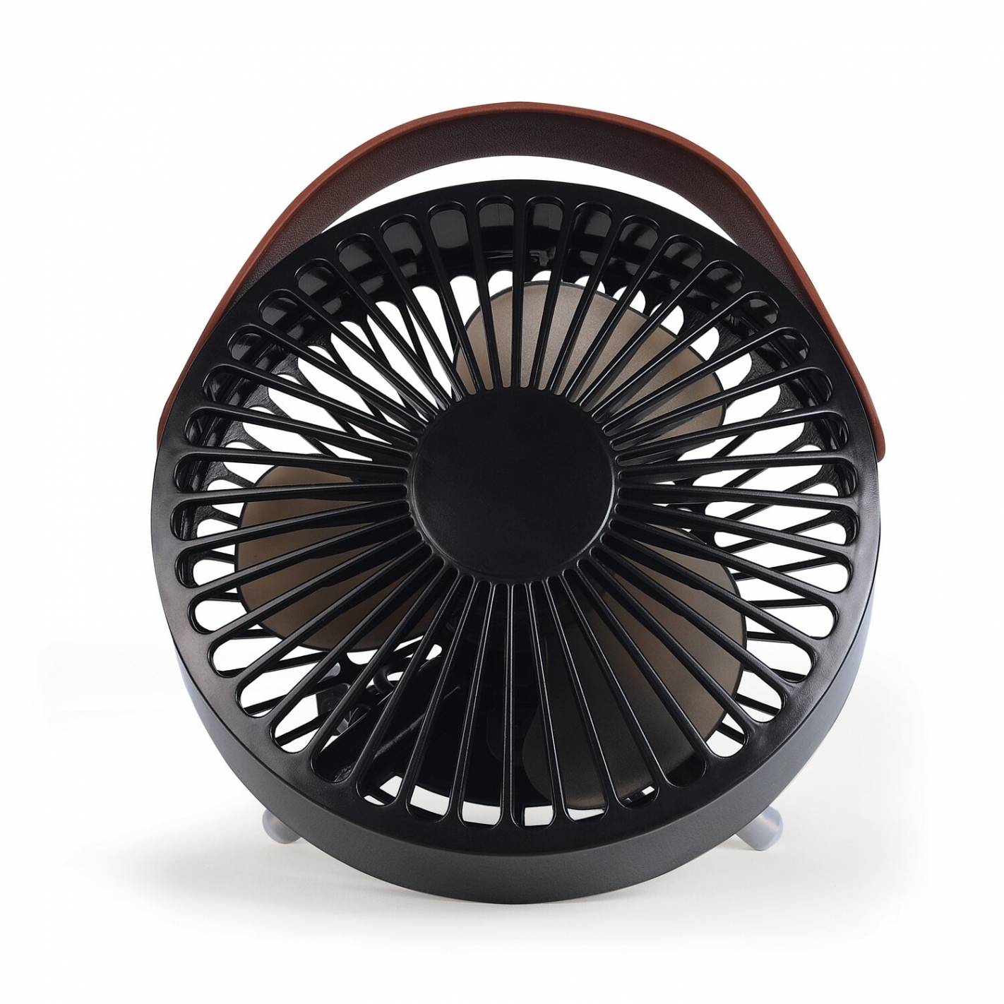 El ventilador puede colgarse de su asa o colocarse sobre sus patas retráctiles.