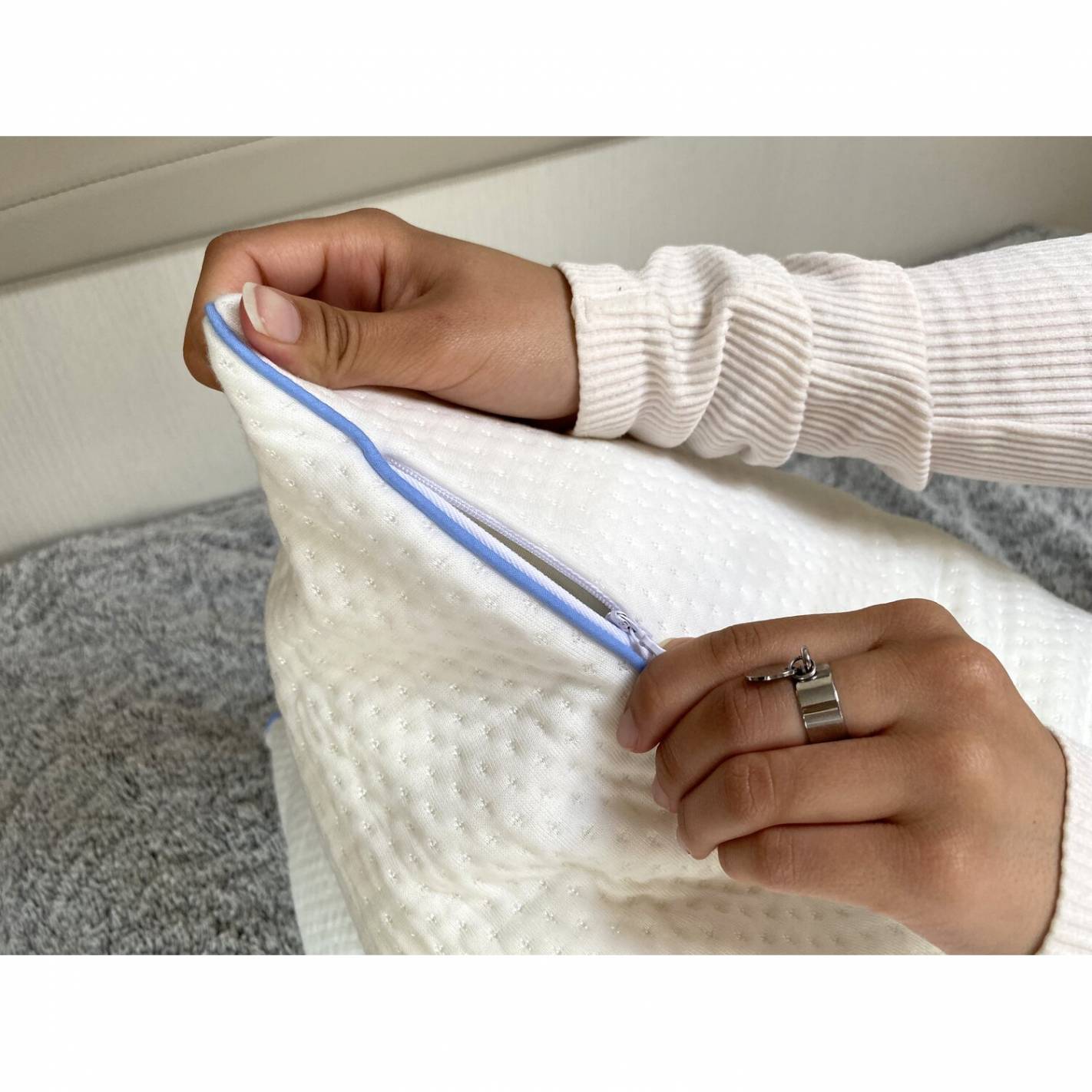 La almohada cuadrada de espuma viscoelástica mide 60 x 60 cm. Además, la funda de la almohada es de poliéster 100%. Se puede quitar fácilmente gracias a su cremallera.