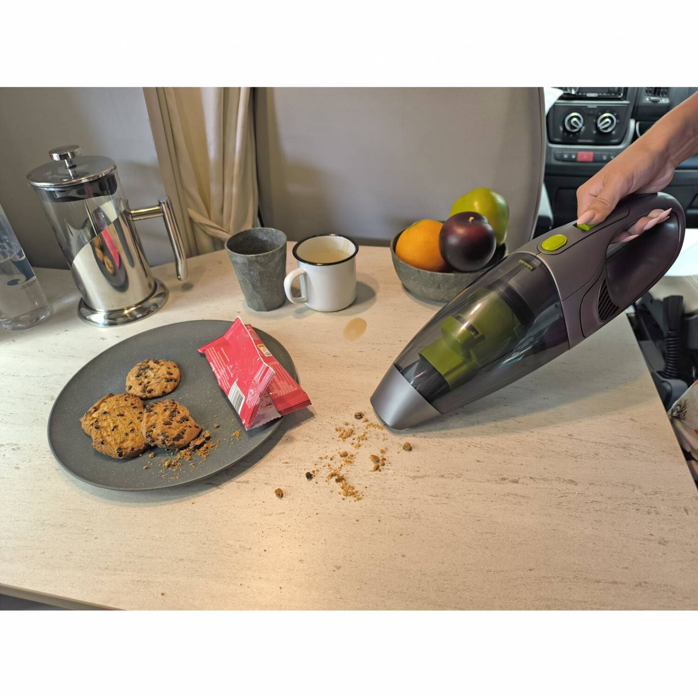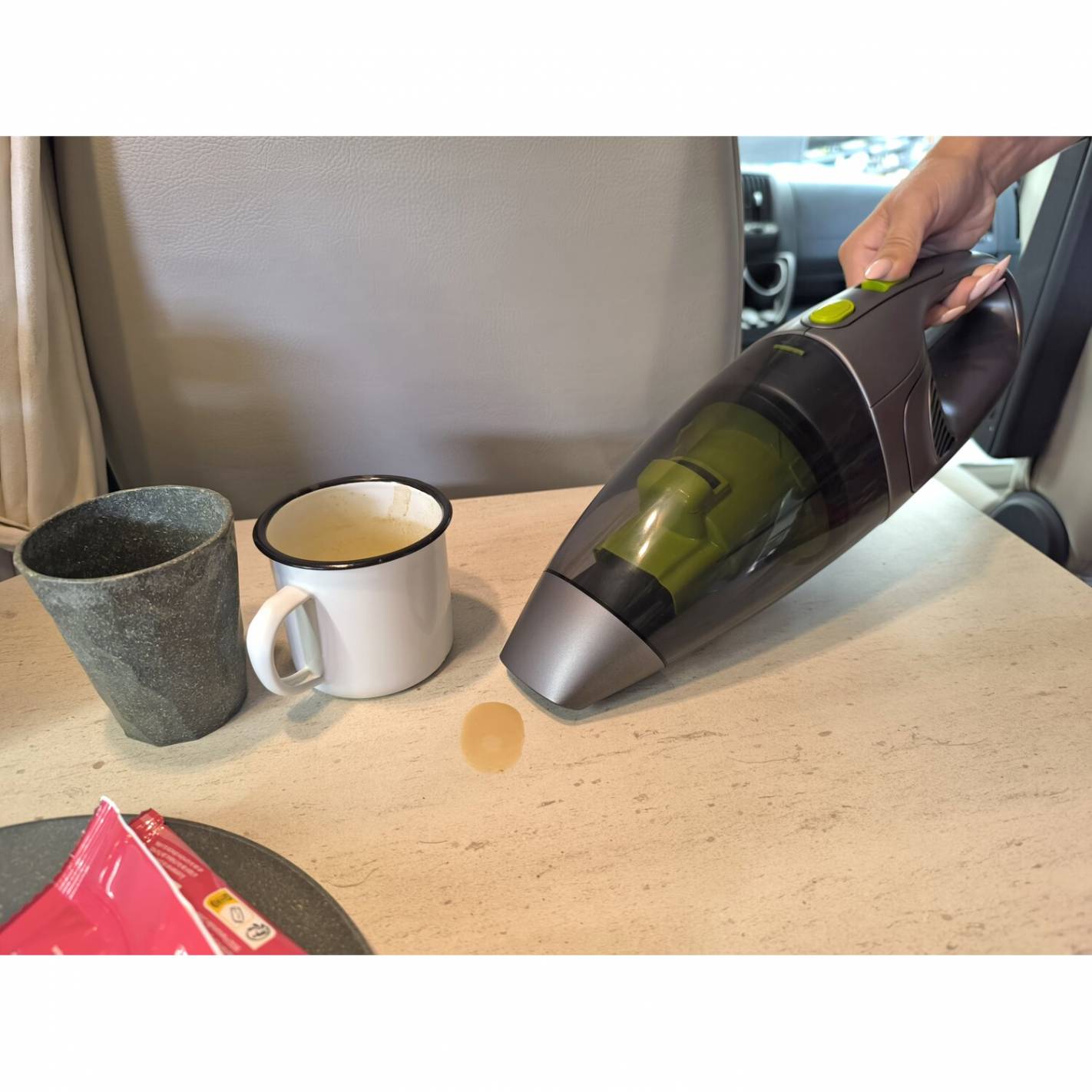 Su depósito de 500 ml ofrece una capacidad suficiente para evitar vaciados frecuentes. Se adapta a diferentes superficies, ya sean asientos, suelos o zonas de difícil acceso.