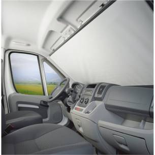 Estor opaco Dometic. Se monta simplemente fijando el estor al nivel de las viseras para ocultar el parabrisas. Este estor opaco de Dometic protege con eficacia de los rayos del sol gracias a su cara exterior de aluminio también protege su privacidad y evita las miradas indiscretas. Modelo beis parabrisa: Boxer / Jumper / Ducato 2002