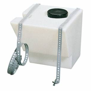 Correa de fijación para depósito de autocaravana. La correa consiste en un metal galvanizado recubierto de plástico y perforado cada 15 mm para un ajuste preciso de la tensión.