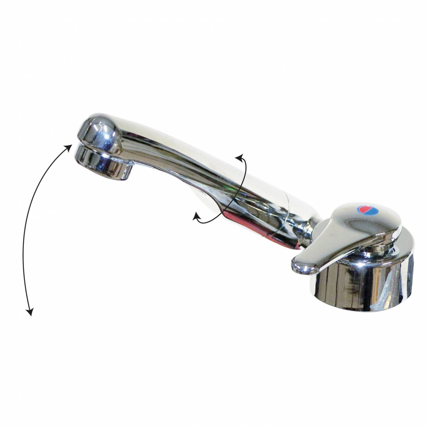 El grifo gira hacia arriba y hacia abajo en toda su altura. El caño también gira sobre sí mismo. Sin embargo, la base del grifo con el mando no gira de izquierda a derecha.