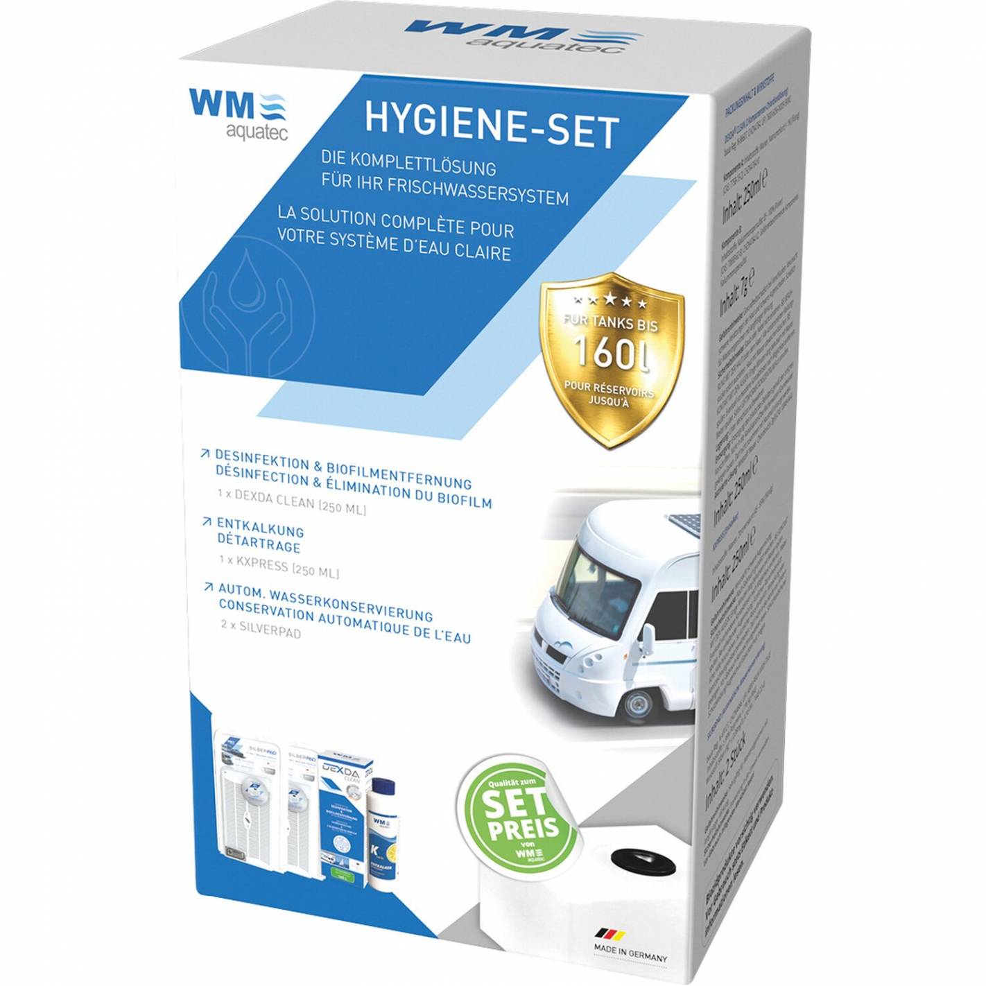 Paquete de higiene, purificador de agua para autocaravana Aquatec. El set contiene 250 ml de limpiador desinfectante Dexda® Clean (para la limpieza y desinfección del sistema y el depósito) y 250 ml de desincrustante Kxpress (para la desincrustación del sistema y el depósito), así como 2 unidades de WM Aquatec Silverpad original (para la conservación del agua) la combinación de estos 3 elementos conservan 35.000 litros de agua. Dexda Clean y Kxpress eliminan con eficacia bacterias, hongos, virus, algas, legionelas y biopelículas, desinfectan todo el sistema de agua limpia con el ingrediente activo de dióxido de cloro, descalcifican todo el sistema de agua dulce (sin residuos) y eliminan los olores desagradables. Silverpad conserva el agua de forma automática con la dosificación automática de iones de plata pura (Ag+) cada vez que se llena el depósito.Protege el agua de forma duradera. Paquete de higiene, purificador de agua de autocaravana Aquatec. El set contiene 250 ml de limpiador desinfectante Dexda® Clean (para la limpieza y desinfección del sistema y del depósito) y 250 ml de descalcificador Kxpress (para la descalcificación del sistema y del depósito), así como 2 piezas del original WM aquatec Silverpad (para la conservación del agua), estos 3 elementos acoplados conservan 35.000 litros de agua. Dexda Clean y Kxpress, eliminan eficazmente bacterias, hongos, virus, algas, legionelas y biopelículas, desinfectan todo su sistema de agua clara gracias a la sustancia activa de dióxido de cloro, descalcifican su sistema completo de agua dulce (sin residuos) y eliminan los olores desagradables. Silverpad permite la conservación automática del agua con la dosificación automática de iones de plata puros (Ag+) en cada nuevo llenado del tanque, ofrece una protección de larga duración a su agua.