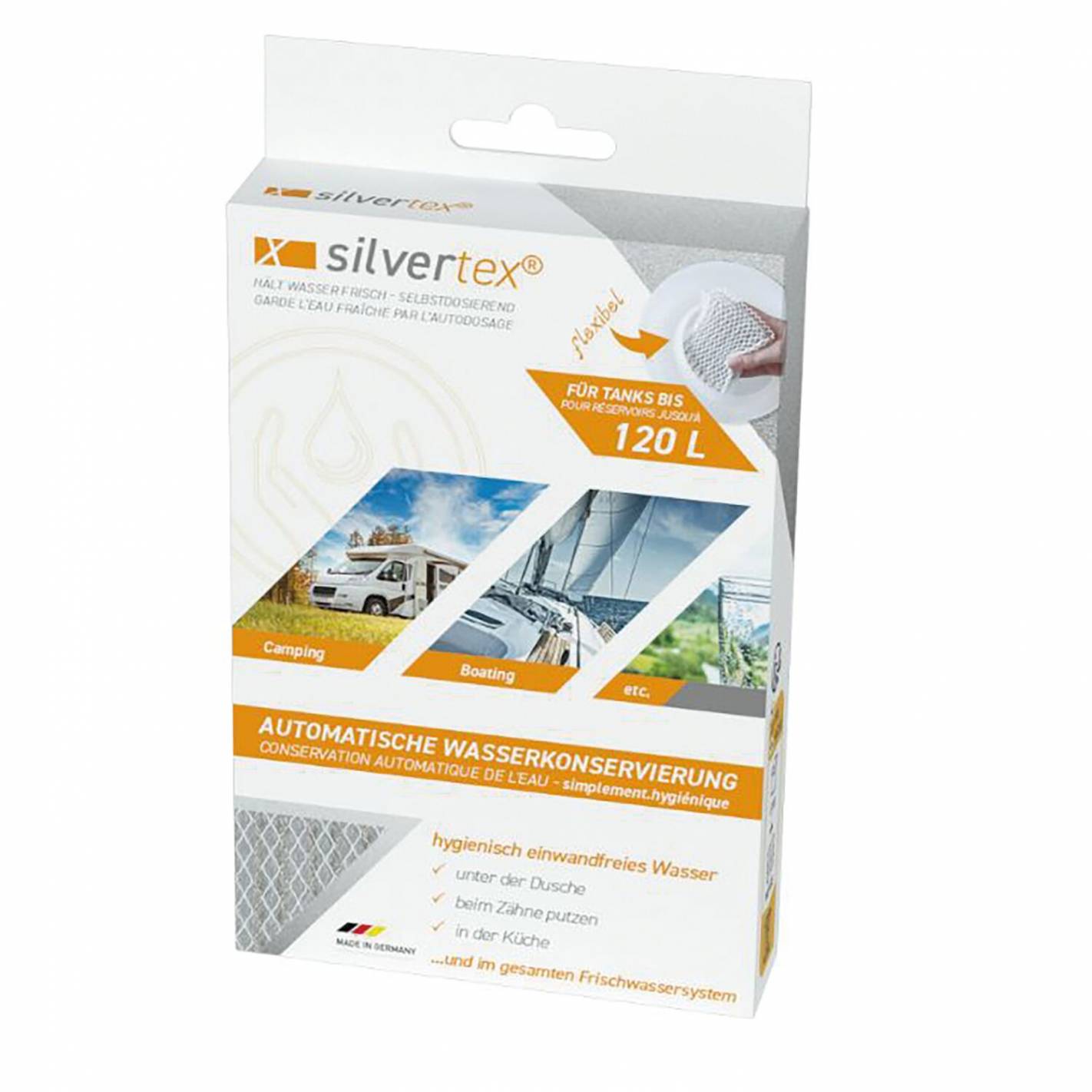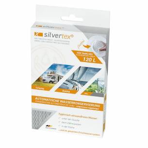 ¿Quieres que el agua de la cisterna de tu autocaravana sea siempre potable? Opta por Silvertex, que gracias a su ingenioso sistema de dosificación automática de iones de plata, conserva la calidad del agua hasta 6 meses.
