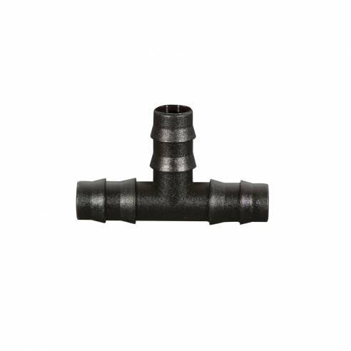 Racor en T de 20 mm de diámetro. Plástico negro.