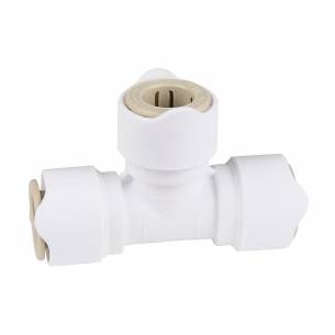 El conector en T hembra/hembra/hembra de 12 mm Whale, diseñado con la tecnología patentada Quick Connect, te permite conectar fácilmente tres tubos de agua en tus sistemas de fontanería a bordo (autocaravanas, furgonetas, caravanas). Se vende en lotes de 2 y es la solución ideal para crear derivaciones compactas y seguras.