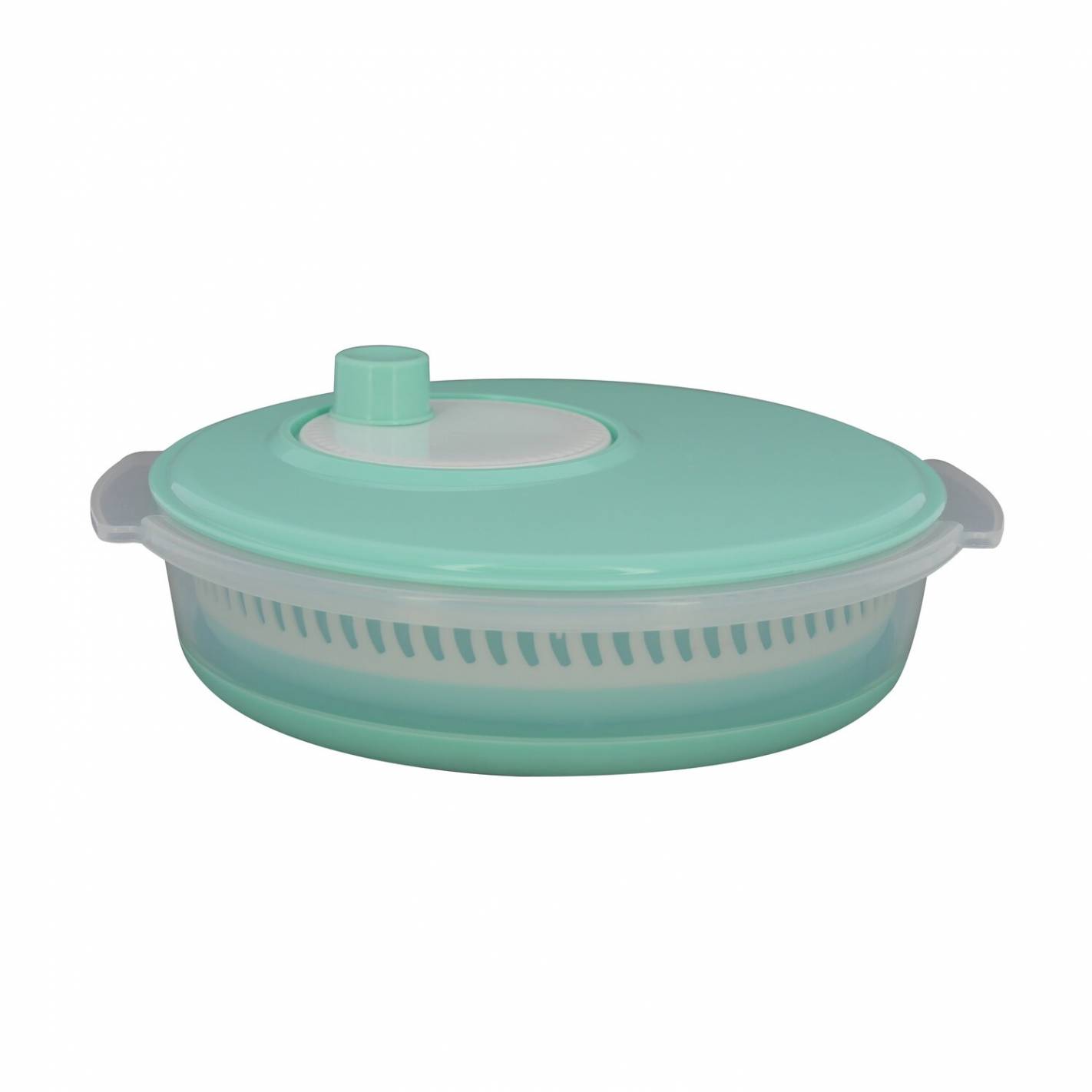Laensaladera plegable es un accesorio de cocina de silicona retráctil. También tiene una tapa de plástico y unas pequeñas asas laterales para sujetarla firmemente mientras gira.