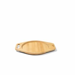 El salvamanteles está hecho de bambú, un material resistente pero ligero. Con dos asas, es fácil transportarlo con algo encima, como el molde de silicona, sin quemarse. Además, una de las prácticas asas tiene un agujero para que pueda colgar el salvamanteles. ¡Ingenioso!