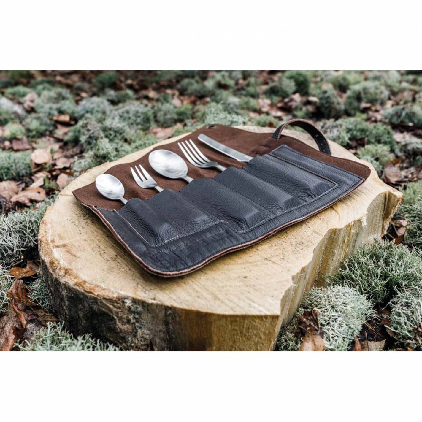 El estuche de cuero para cubiertos Petromax combina elegancia y practicidad. Fabricado en cuero, protege eficazmente los utensilios contra golpes y humedad. Compacto y robusto, permite guardar cuidadosamente los cubiertos para todas tus aventuras en furgoneta o de camping.