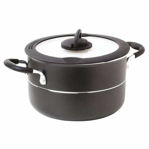 El diseño escalonado de la tapa de cristal permite adaptarla a una amplia gama de tamaños de ollas y sartenes. El asa se adapta a todas las ollas y sartenes de la gama.