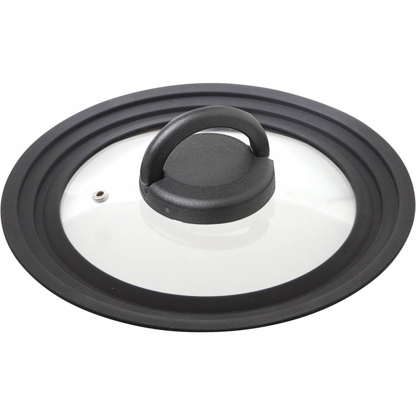 La tapa universal está hecha de vidrio con un borde de silicona. Soporta perfectamente el calor de la cocción.