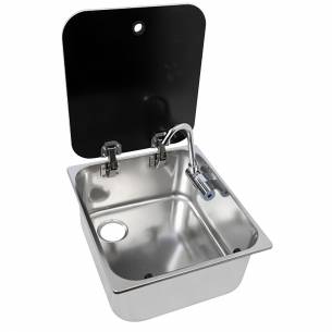Compacto y elegante,el fregadero empotrable NAVY LOAD de acero inoxidable con tapa de vidrio templado es perfecto para espacios reducidos en furgonetas o barcos. Fácil de instalar, robusto y práctico con su grifo abatible, combina diseño y funcionalidad para una cocina nómada optimizada