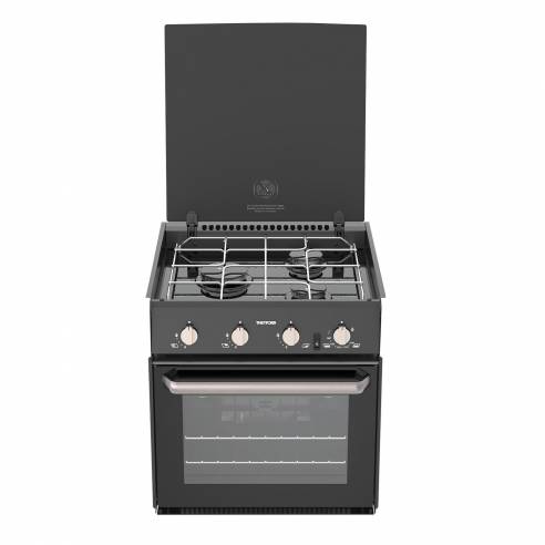 La cocina de gas Thetford Triplex combina robustez y elegancia. Los mandos de control de efecto metálico, el tirador de la puerta de níquel cepillado y la puerta de cristal negro le dan un diseño moderno que encaja perfectamente en el interior de cualquier vehículo de recreo. Esta cocina de gas también es fácil de limpiar.