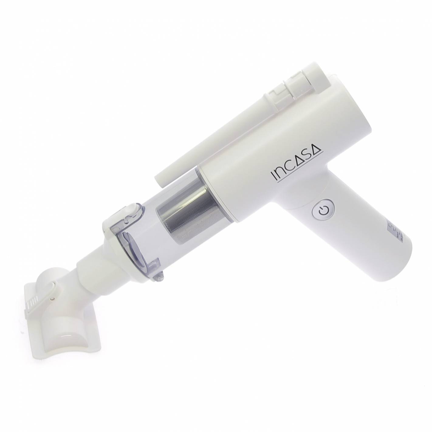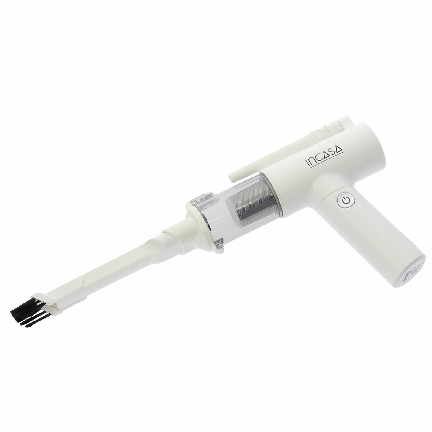 Mini aspiradora inalámbrica recargable Incasa, compacta y ligera, ideal para una limpieza rápida y móvil. 3 en 1 (aspira, sopla, infla), 2 velocidades hasta 13 kPa, accesorios según modelo y autonomía de hasta 20 minutos, perfecta para furgonetas, autocaravanas o espacios pequeños.