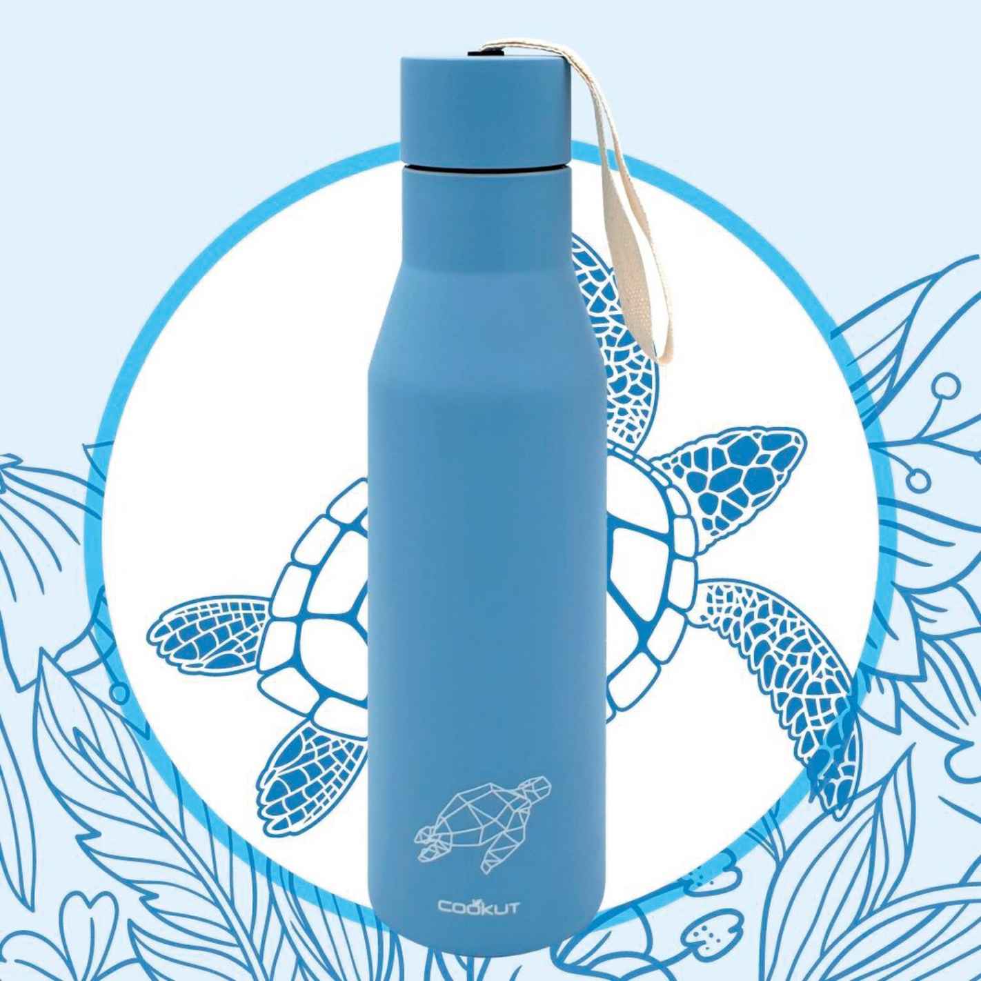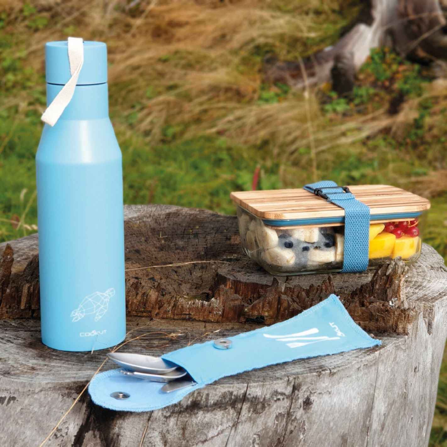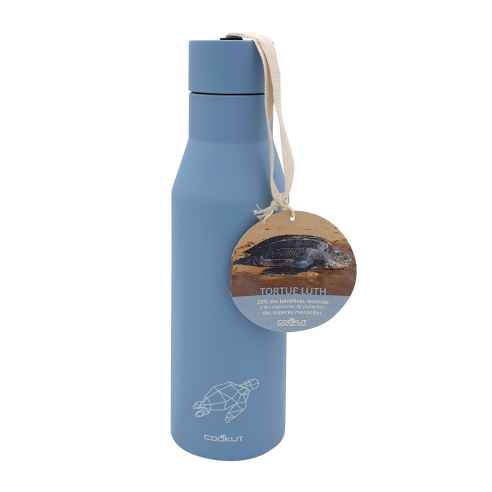 La botella isotérmica  tiene una doble pared de acero inoxidable para mantener el calor hasta 12 horas y el frío hasta 24 horas. Muy práctica, puedes meter en ella bebidas frías o calientes, según te apetezca. Así te acompañará en tus excursiones o cuando vayas de acampada. Con su correa de tela en el extremo del tapón, es fácil de transportar. La botella isotérmica tiene un pequeño animal dibujado, ¡lo que le da un toque de diseño! Pero es más que eso. La marca Cookut está comprometida con el medio ambiente. De hecho, esta botella es reutilizable y el 20 % de los beneficios se destinan a Pure Ocean, que financia la protección de los ecosistemas marinos y la biodiversidad. Para tener toda la gama a juego de la marca Cookut, descubre los cubiertos de viaje (se piden por separado) y la fiambrera (se pide por separado).