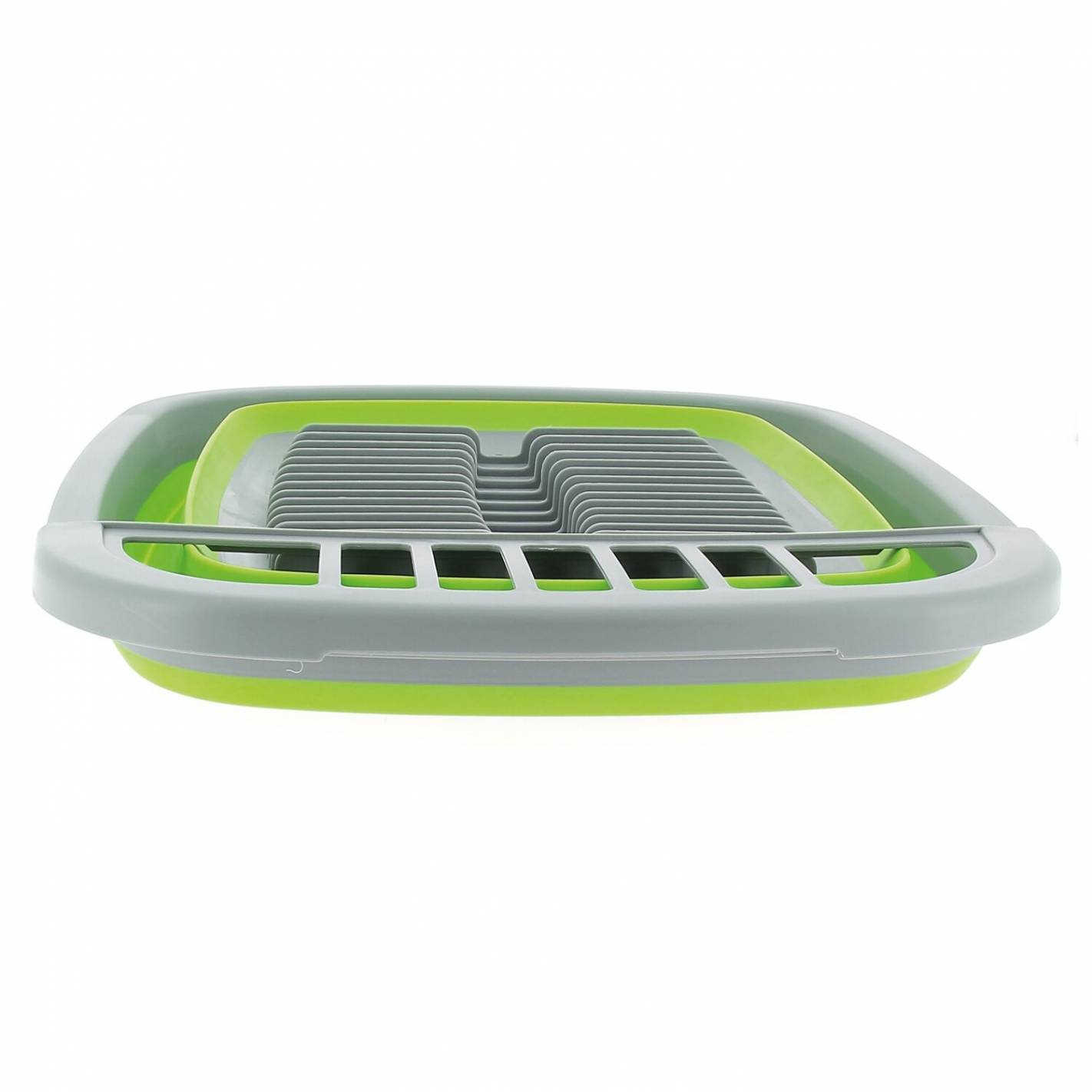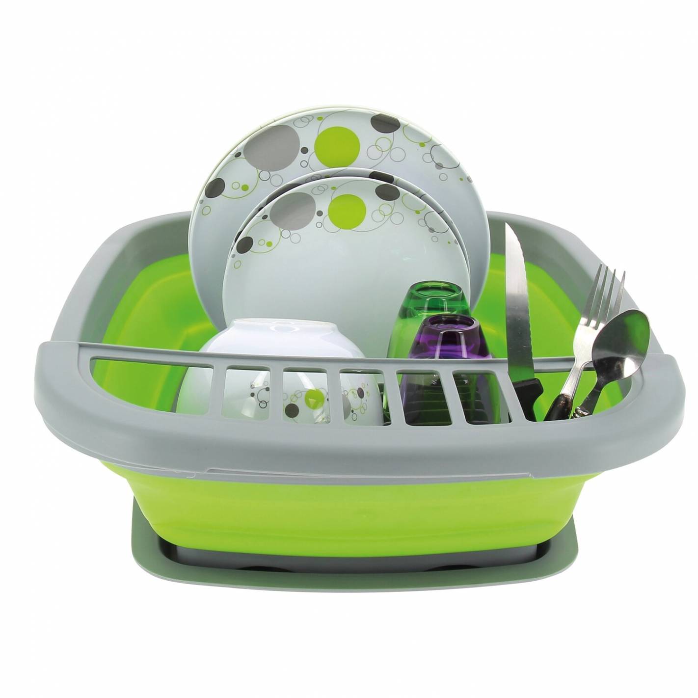 Maxi escurridor de vajilla plegable. Este utensilio es ideal para usarlo en vehículos recreativos: caravana, autocaravana, furgoneta camper, mobile home o barco. Este práctico escurridor de vajillas está hecho de un material de silicona que permite plegarlo fácilmente para reducir su volumen y ahorrar espacio al máximo. El escurridor de silicona también es fácil de limpiar y resiste un uso intensivo.