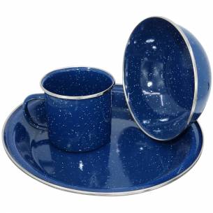 Además, en chapa esmaltada, la vajilla es ligera y robusta. Práctico para caminar o acampar!