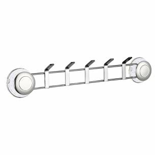 El soporte con ganchos se fija fácilmente a la pared mediante sus dos ventosas.