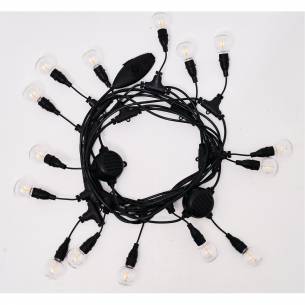 La guirnalda luminosa para patio Soplair de 8 m crea un ambiente acogedor tanto en interiores como en exteriores. Con sus 15 bombillas LED de luz blanca cálida, sus 3 niveles de intensidad luminosa y sus altavoces Bluetooth integrados, combina iluminación y música para crear veladas agradables, animadas y fáciles de personalizar