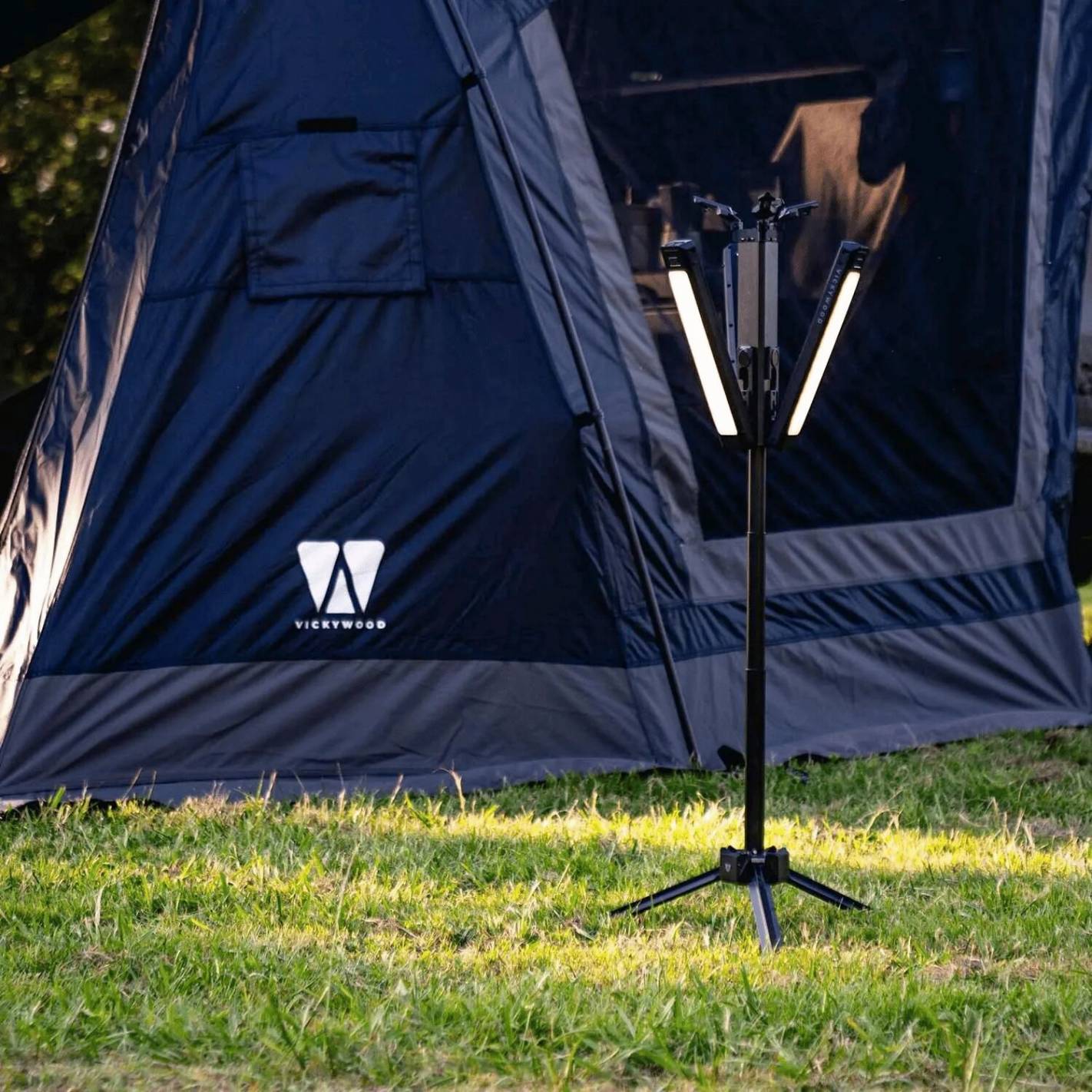 La lámpara Tripod VickyWood ofrece una iluminación de 360° con tres modos (caliente, frío, SOS) y una altura ajustable de hasta 130 cm para adaptarse a todas tus aventuras. Robusta, recargable y transformable en powerbank de 5000 mAh, combina versatilidad, seguridad y autonomía, incluso en plena naturaleza.