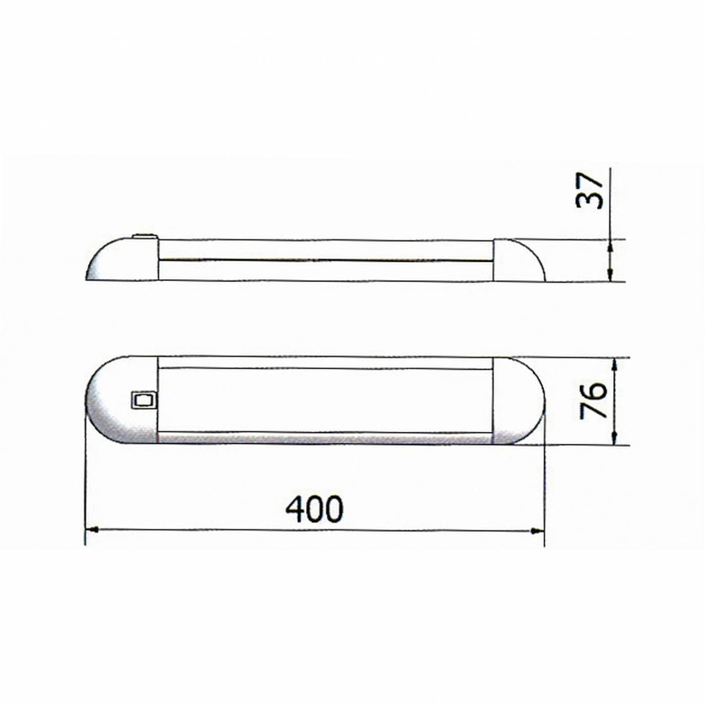 Voltaje: 12 V. Conso. : 4,3 W. Potencia: 350 lm. Dimensiones (AnxAlxPr): 400 x 37 x 76 mm. Con interruptor. Voltaje: 12V. Consumo: 4,3W. Potencia: 350 lúmenes. Dimensiones (An. x Al. x Pr.): 400 x 37 x 76 mm.