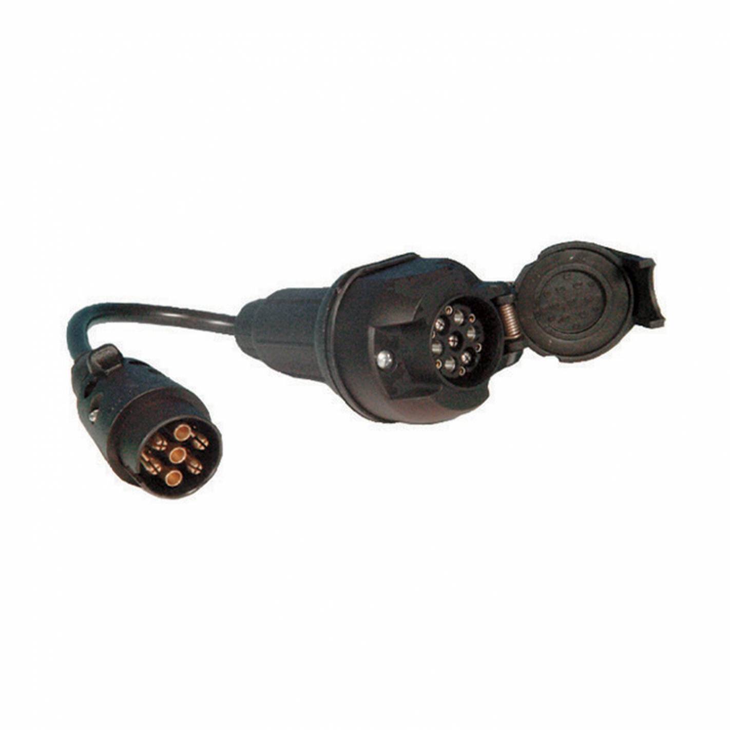 Este adaptador sirve para conectar un coche de 7 polos a una caravana de 7 ó 13 polos.