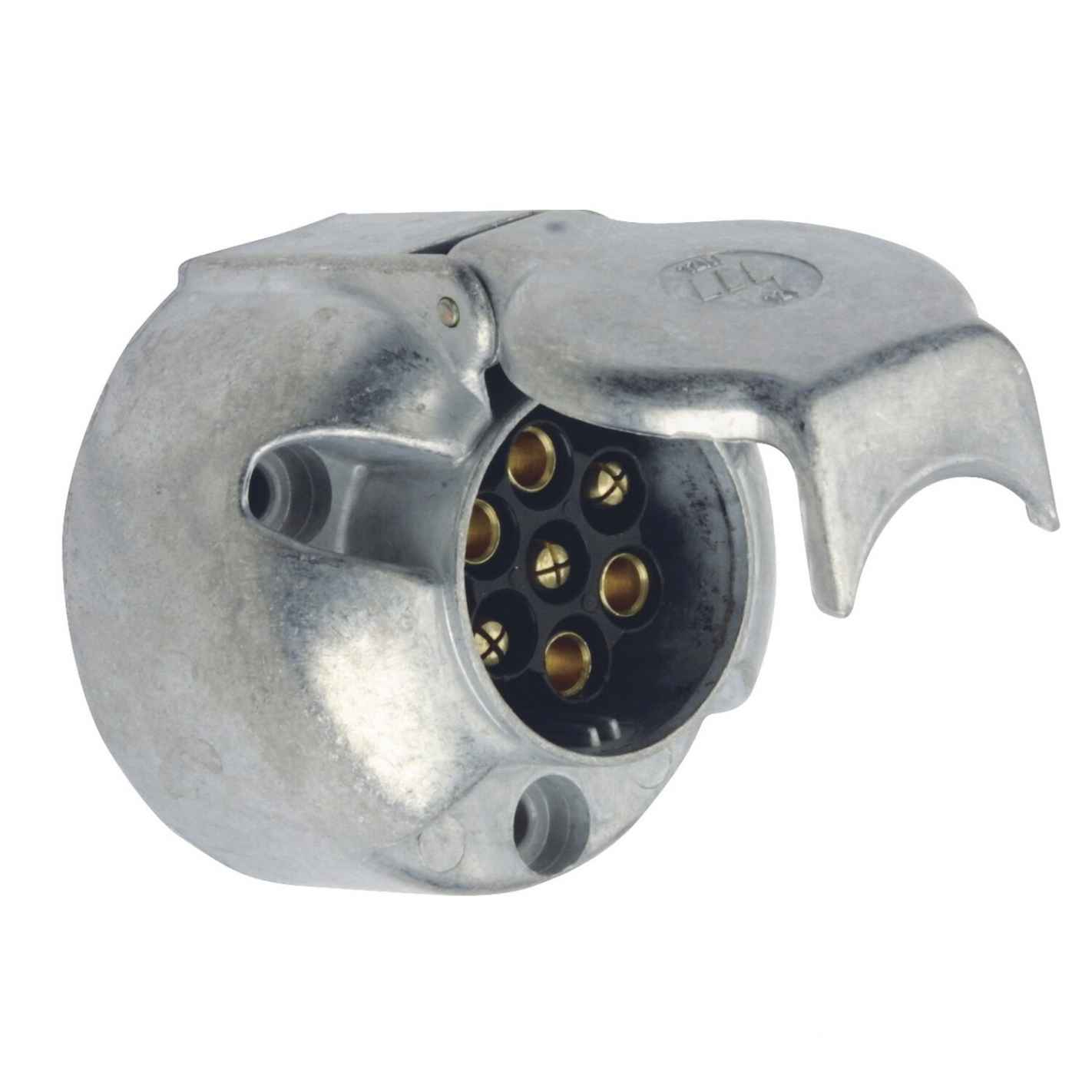 Base hembra 7 polos. Permite conectar el mazo de cables eléctricos del coche y de la caravana (o remolque)