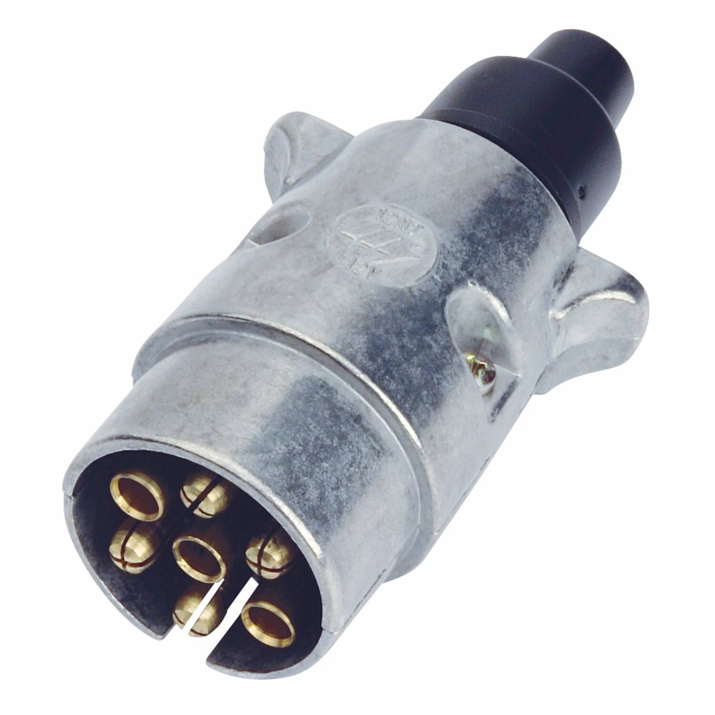 Enchufe macho 7 polos. Permite conectar el mazo de cables eléctricos del coche y de la caravana (o remolque)