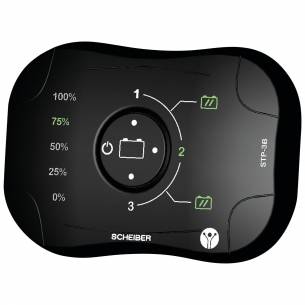 El indicador mide la tensión de la batería principal y de la batería auxiliar. La parte frontal es totalmente estanca.