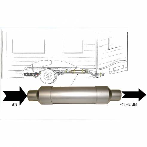 Hasta -25 dB de atenuación de ruido. Dimensiones (diámetro x largo): 95 x 490 mm.