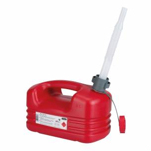 Bidón de plástico especial para combustible. Este bidón posee un tapón con respiradero patentado que protege el hidrocarburo transportado. El bidón es a prueba de golpes, muy robusto, compacto y por ello fácil de transportar. Además, el bidón tiene un pitón integrado.