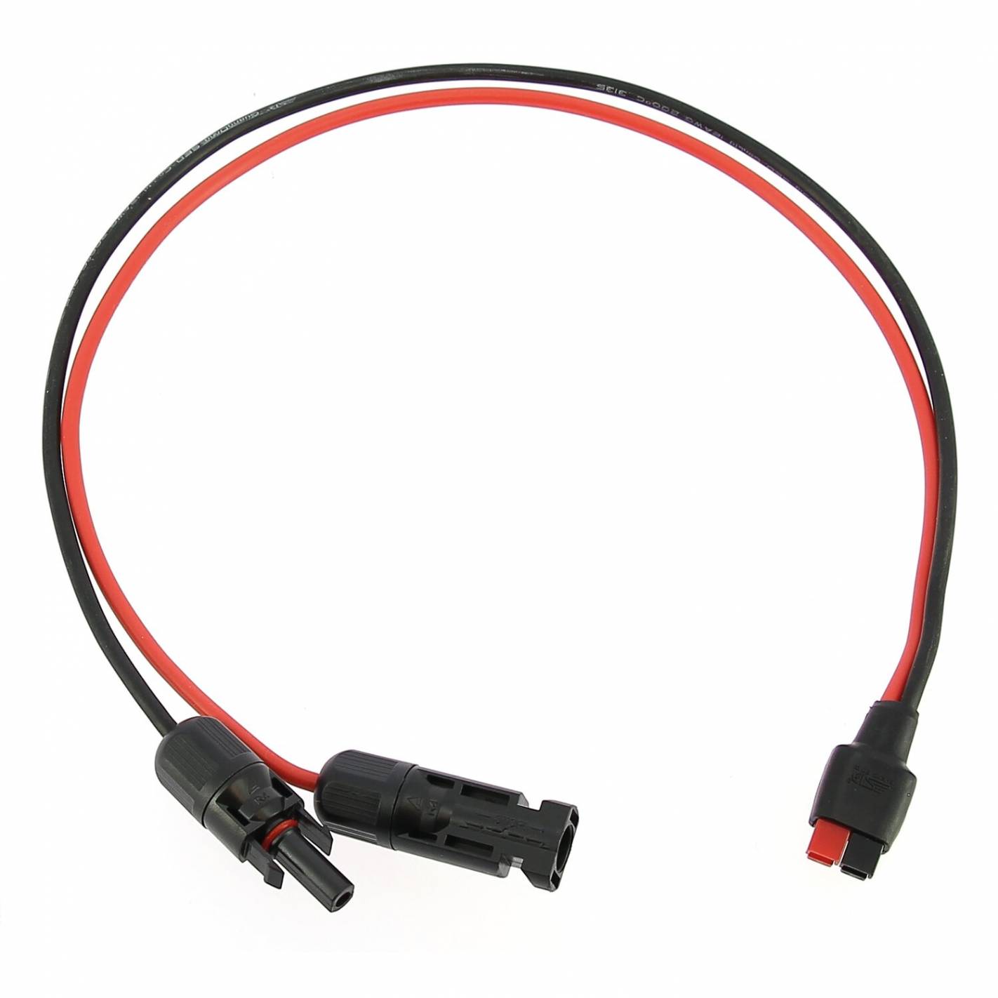 Este cable solar de 50 cm (3,3 mm² / 12AWG) está recubierto de silicona resistente a altas temperaturas (hasta 200 °C) y listo para usar con sus conectores MC4 (macho + hembra) y Anderson PP30 con tapa impermeable.