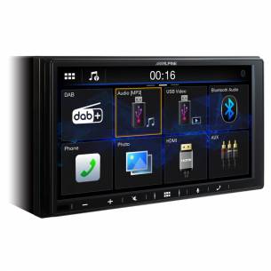 Jaula de montaje estándar suministrada. Puerto USB. Pantalla capacitiva. Compatible con cámara de marcha atrás. Sintonizador digital AM/FM y DAB+. Conectividad Bluetooth manos libres. Amplificador de 4 x 50 vatios