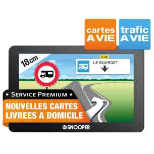 GPS multifunciones Aguri, especial para autocaravana. Los GPS Snooper y Aguri ofrecen una ruta adaptada a la dimensiones de la autocaravana: se pueden configurar hasta 10 dimensiones. El GPS para autocaravana posee una cartografía HERE Premium (Navteq) con 46 países. También tiene un motor de búsqueda por áreas de servicio y campings con información detallada sobre servicios, tarifas, período de apertura y fotografías. Más de 170.000 puntos de interés para campistas. También existe la posibilidad de introducir sus propios puntos de interés o de planificar un viaje de varias etapas. El asistente de cambio de carril y la proyección realista de las señales le acompañarán durante el viaje y podrá ver la velocidad de forma instantánea con aviso del límite de velocidad actual según el tonelaje. Software de navegación para turismos incluido. No hay cuotas de actualización o suscripción: todas las actualizaciones de mapas, software, alertas de radares e información de tráfico son gratuitas de por vida. Modelo: CC6400 Aguri