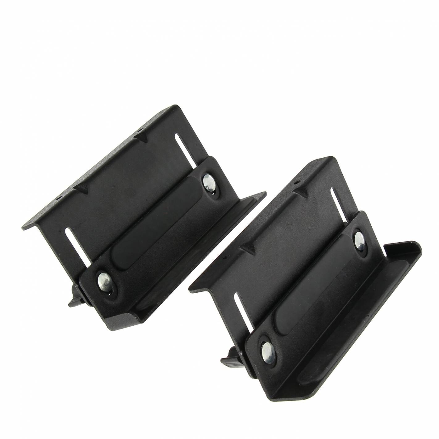 Con 2 sistemas de soportes deslizantes ajustables y un kit de tornillos.